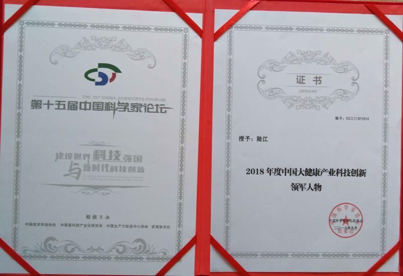 陸江榮獲引領行業發展杰出貢獻人物證書 --------卓康公司榮獲全國質量、服務、信譽AAA級品牌證書